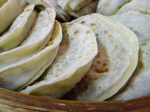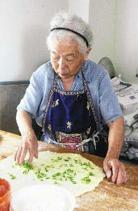 那時候,餅店對面大廈還在建設中,參與建築的工人都會來買秦家餅店的餅,拉著一牛車的建材,從一大早便揮汗工作,到了中午休息時間就來店裡排隊等待著外婆剛出爐的蔥油餅、韭菜盒;滿滿地東北味,異鄉人懷念的家鄉味,充飽下半天的體力。當時在爐邊看爐的小朋友望著焦急地外婆為了怕工人們等待,卻一點工都不能省的以冷水和麵、桿麵皮製餅;尤其以冷水和麵麵質韌性強、花的力氣多,不過那濃濃充滿愛心的味道,卻餵飽了飢腸轆轆等待的人。